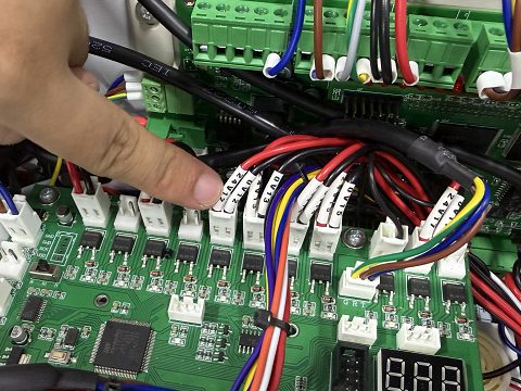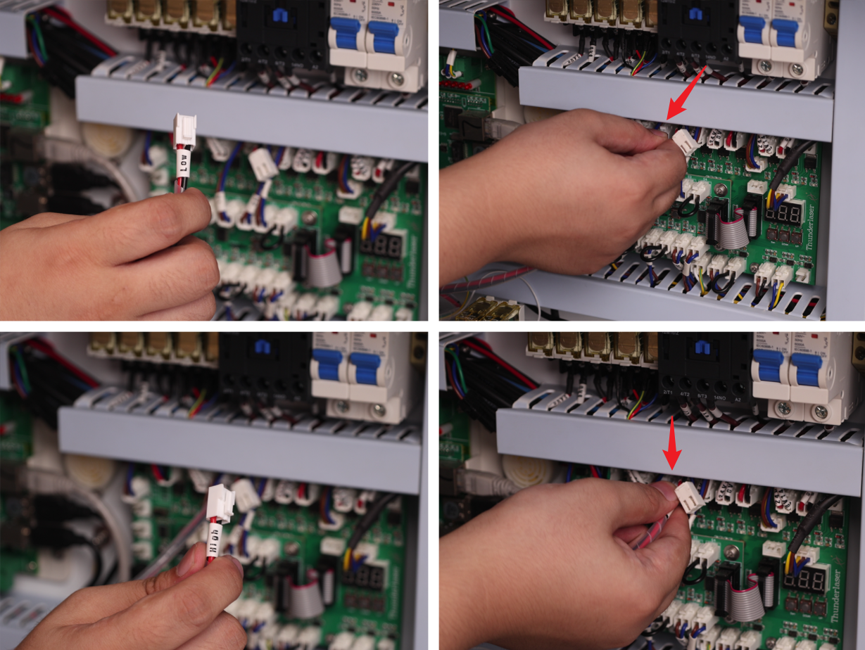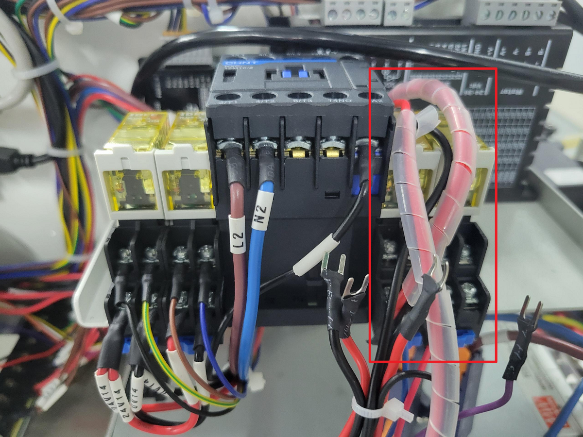 1. Locate the wire labeled RD-shot. Plug it into the 4th small terminal of the 2nd large terminal block located the bottom-left section of the TL Mainboard.