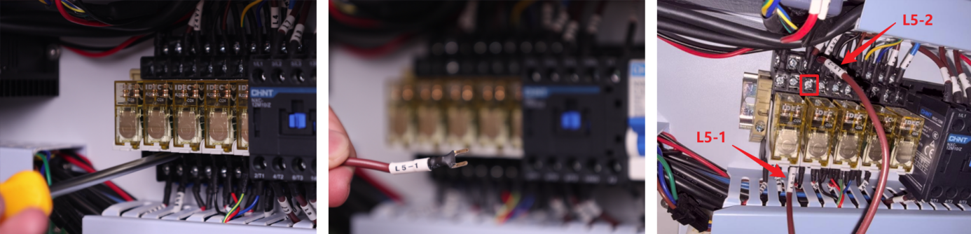 4. L5-1 → Connect to the lower row, 3rd terminal from the left of the device's Relay L5.