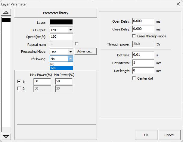 The Air Assist Control supports controlling the auxiliary air pressure in two modes: High Pressure and Low Pressure. The air pressure settings for each mode are independent. You can control the Air Assist Control's operating mode via the following methods: