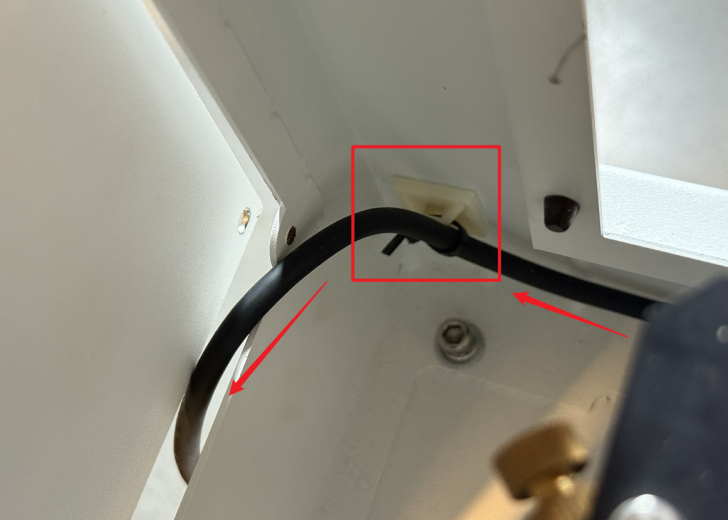 Due to limited space in the rear cover's cable pass-through holes, improperly routed cables may intrude into the laser optical path. This poses serious risks including: laser beam reflection hazards, burned/cut wires and potential equipment damage.