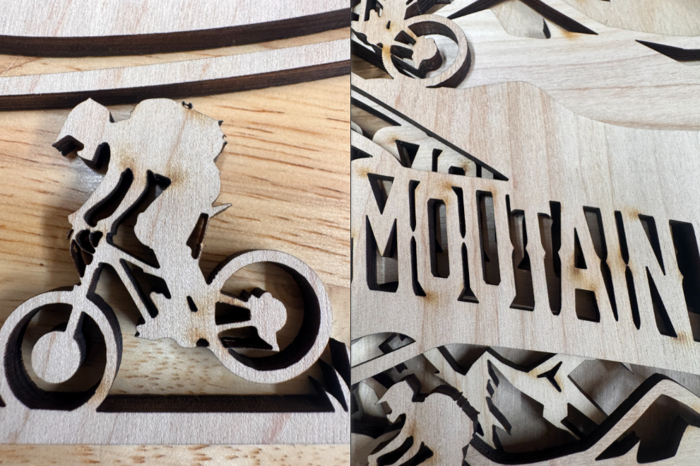 Charring is often caused by the combustion of material vapors. If you have an Air Assist Kit installed, increase the airflow setting. Stronger airflow blows away smoke and rapidly cools the cutting area, significantly reducing burnt edges.