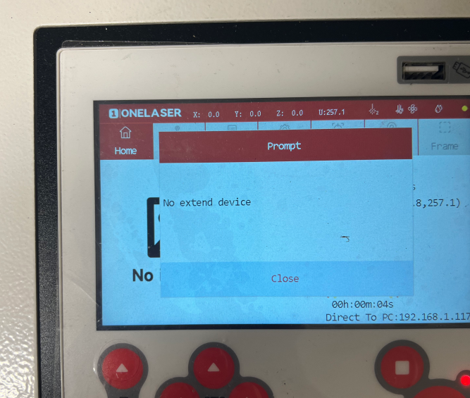 The control panel displays a No Extend Device error prompt.