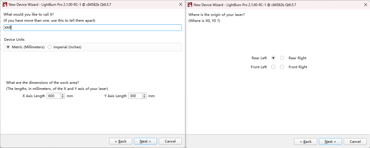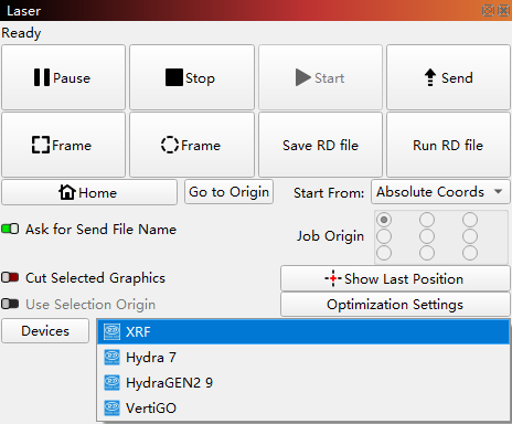 If this is your first time connecting the machine, ensure the origin and bed size are set correctly:
