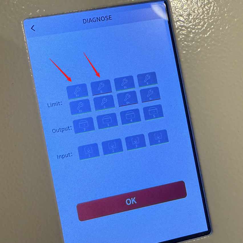 Open the Diagnose page on the controller panel. Manually press the limit switch with your finger.