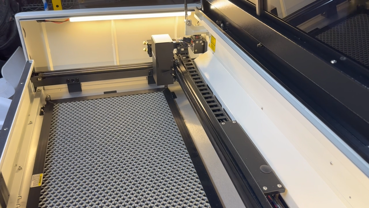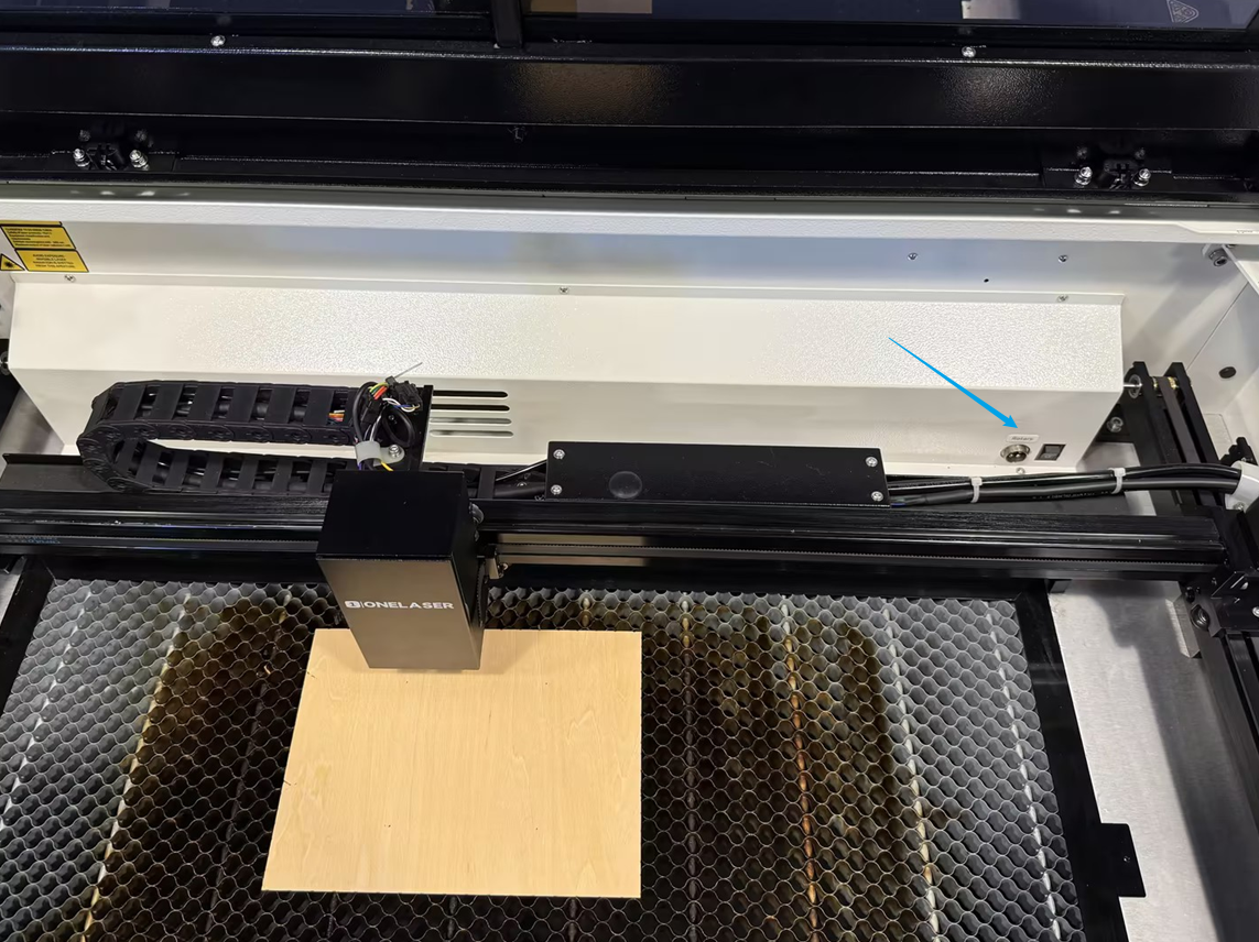 When removing the internal packaging foam from a new machine, the rotary axis switch can sometimes be accidentally toggled. If this switch is ON, the laser head will not be able to reset normally.