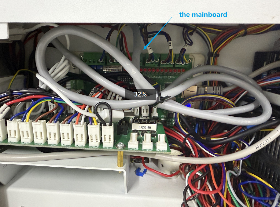 At the Mainboard: Remove the right-side panel, locate the mainboard, and find the CN10 port. Ensure the purple and yellow wires are plugged in securely and are not loose.