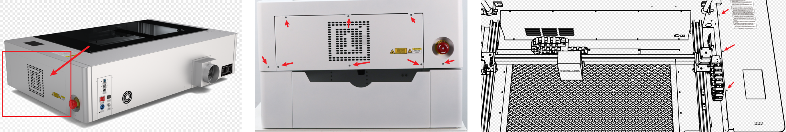 Use a 2 mm Hex Wrench to remove the 6 screws from the right-side door of the machine and locate the switch module.