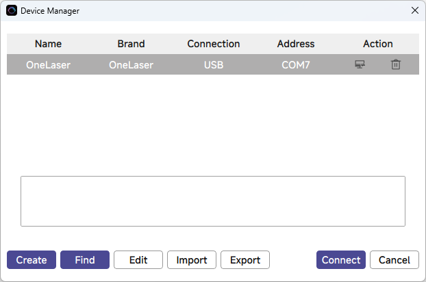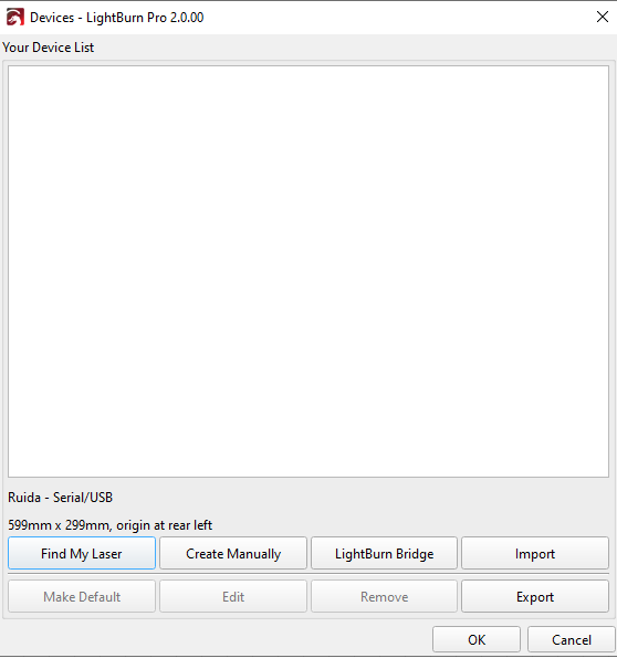 Click "Devices" from right bottom corner of the software. Click "Find My Laser" to set up by the Devices setting.