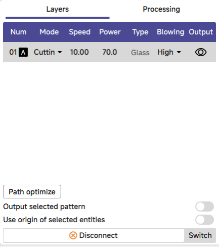 Real-time adjustment of power/speed / Thumbnail previews for graphics / Live progress tracking during processing |