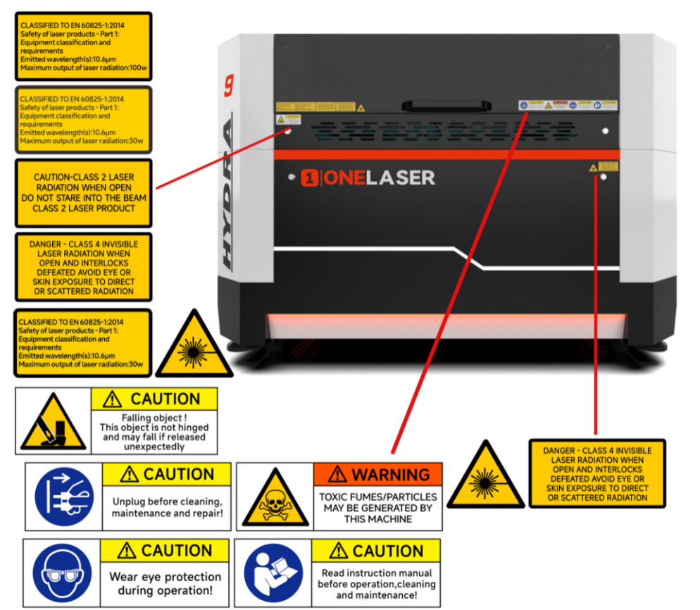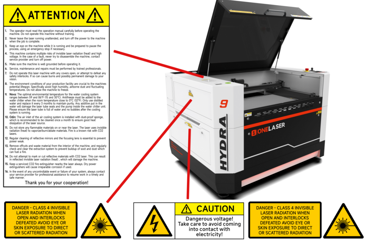 For safe operation and optimal performance of your Hydra machine, you MUST strictly follow all specifications and ONELASER’s installation requirements.