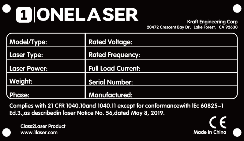 This device has laser radiation function. Please pay attention to the danger of laser beam. Please avoid direct exposure of eyes or skin to laser during operation. Be sure to follow the safe operating procedures to prevent personal injury or machine damage.