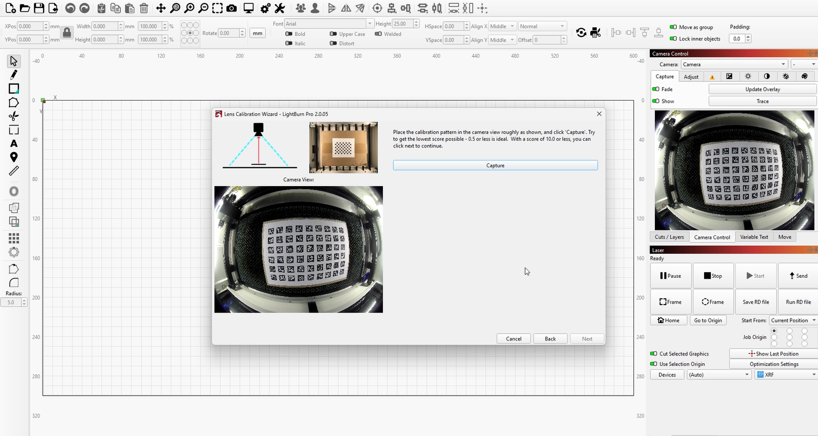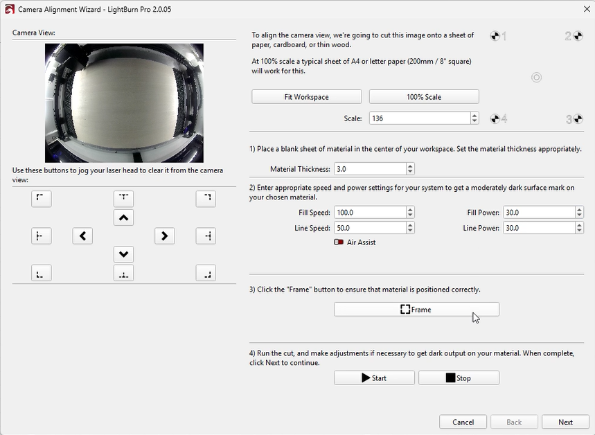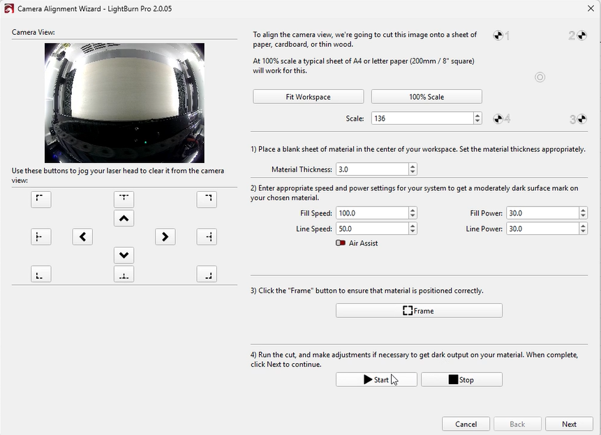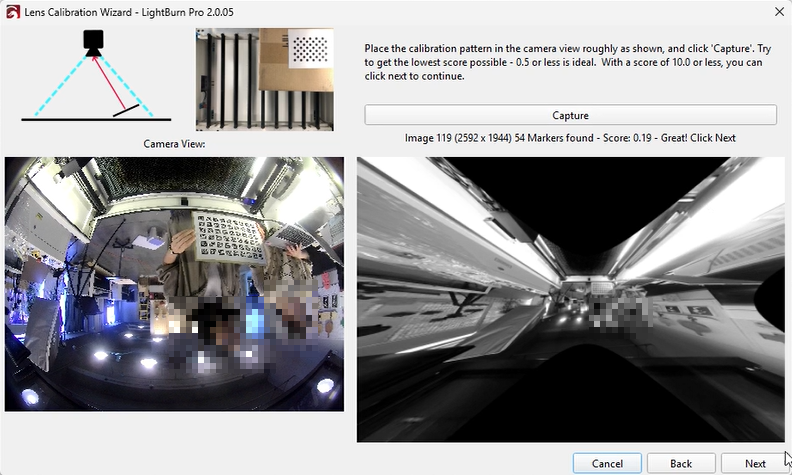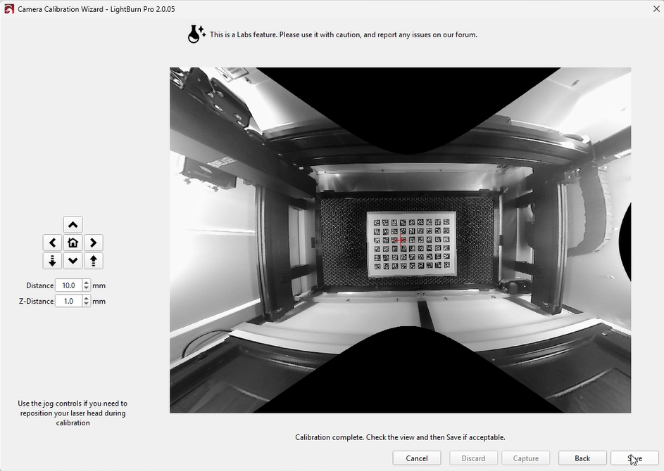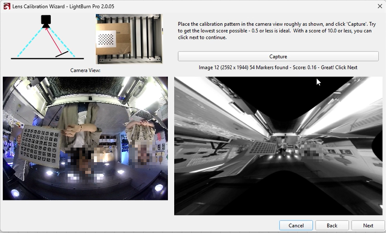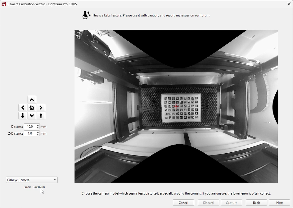 Although LightBurn suggests an error below 0.5 is acceptable, this is near the upper tolerance limit. Based on our testing, achieving an error below 0.2 will provide significantly better calibration results.