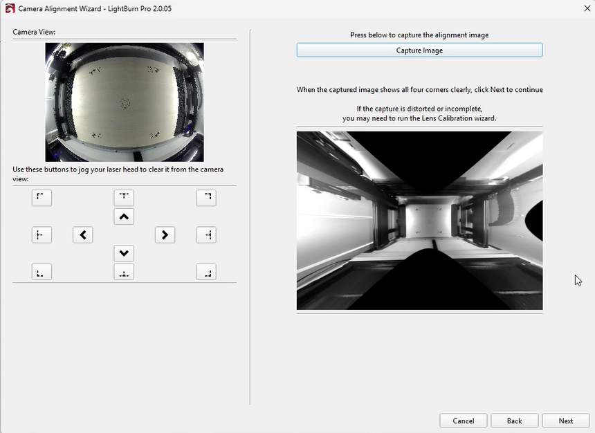 Capture the alignment image. When all four targets are clearly visible, click “Capture Image.”