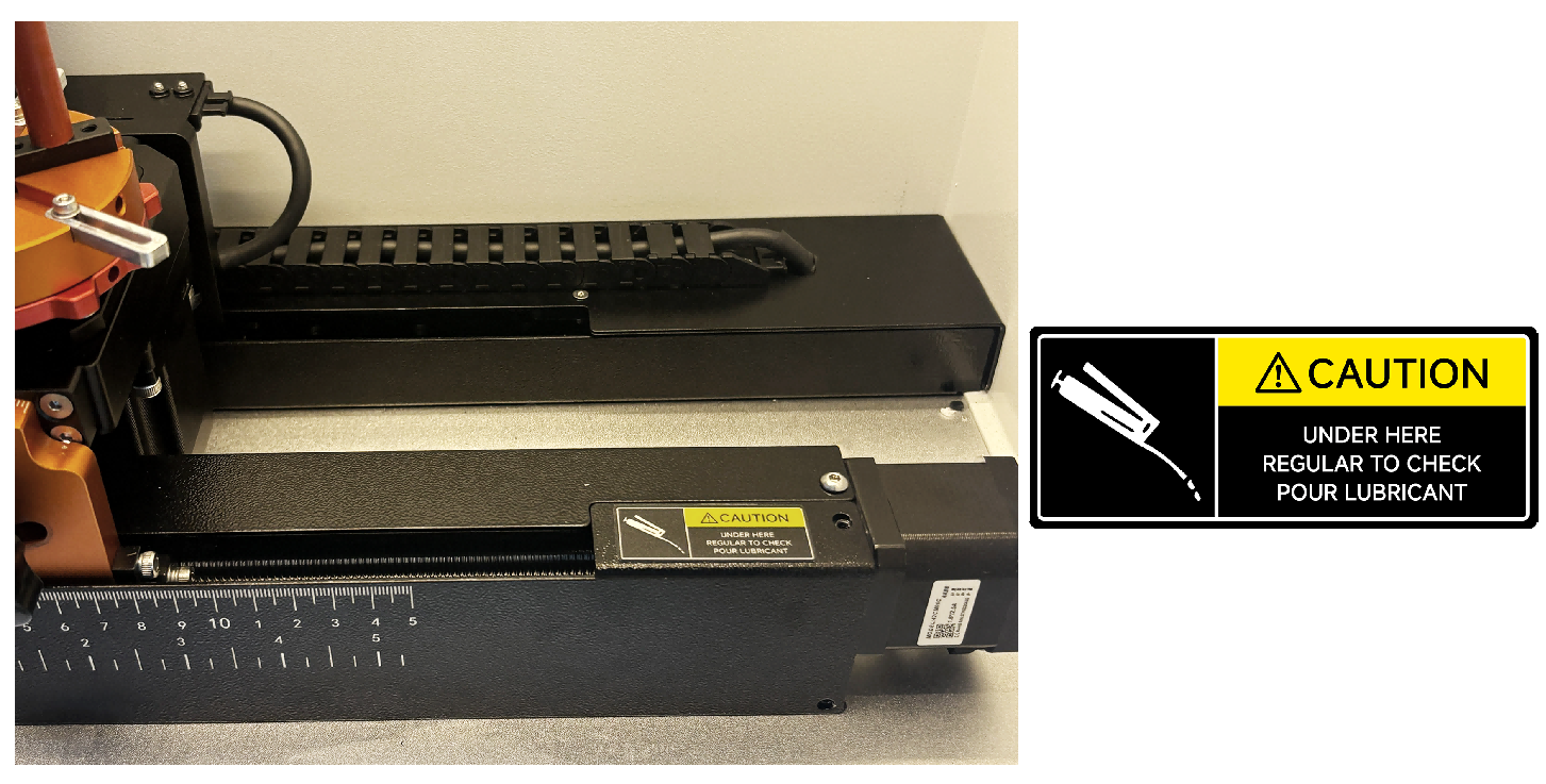 Remove small pieces that fall into the work table, gears, rails, and belts with a small brush or vacuum cleaner.