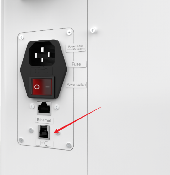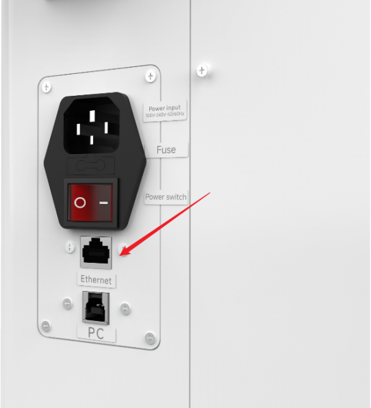 Connect machine with PC cable and Ethernet cable.