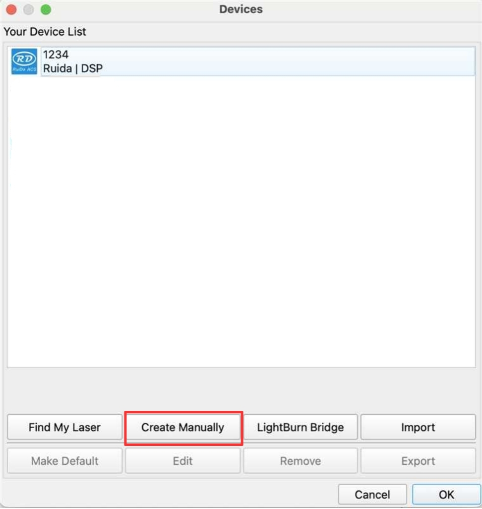 Click "Devices" from right bottom corner of the software. Click "Create Manually" to set up by the Devices setting.