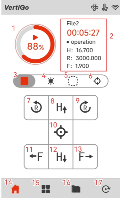 1. Start / Pause the job |