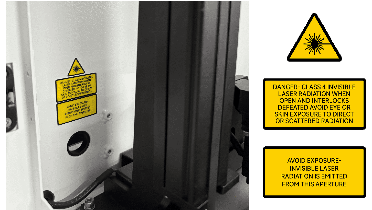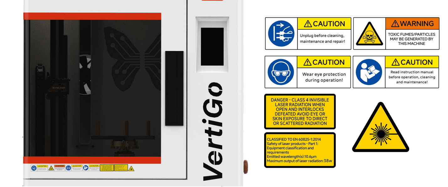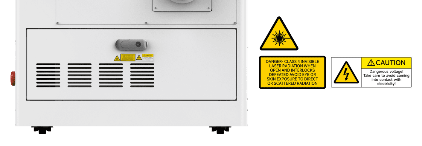 2.This laser engraving system contains a carbon dioxide (CO2) laser of Class IV that emits intensive and invisible laser radiation. Without safety precautions the direct radiation or even diffuse reflected radiation is dangerous!